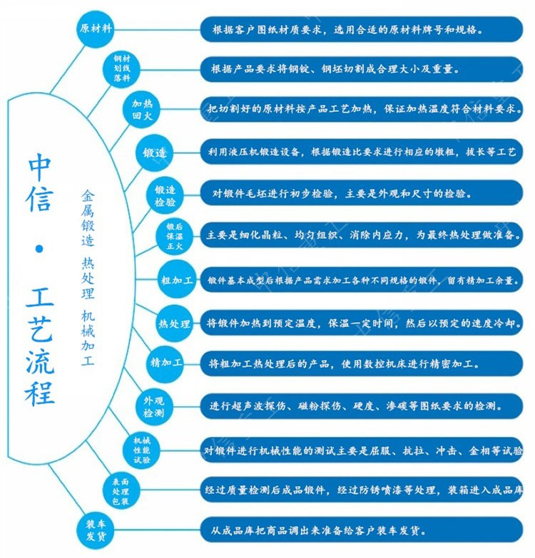 加工設備:鍛造設備、高精度CNC加工中心、數控車床,銑床等配套加工設備。
